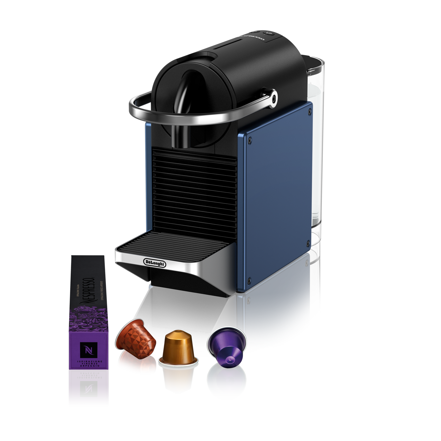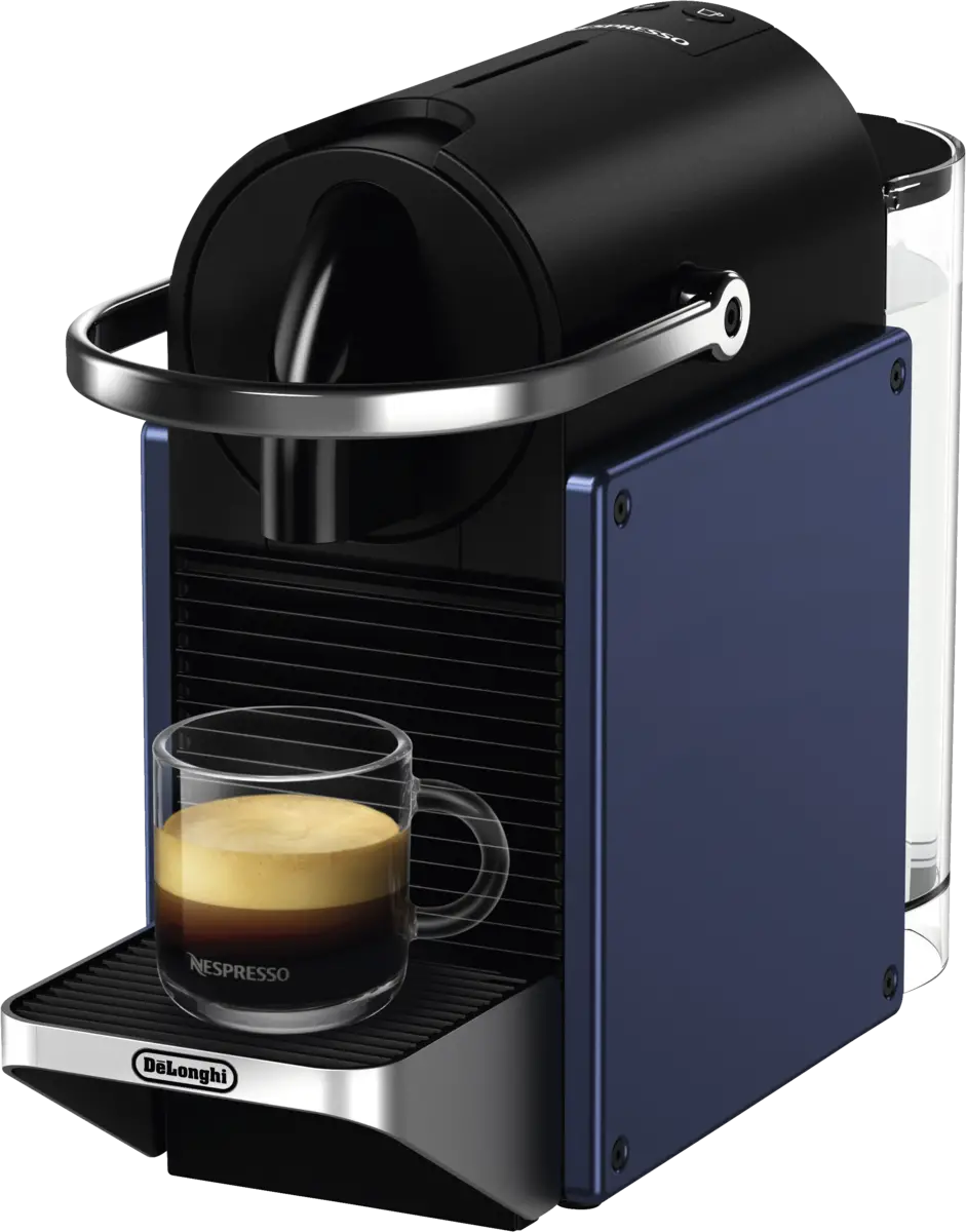 De Nespresso Pixie koffiecupmachine van DeLonghi combineert een industrieel ontwerp met hoogwaardige prestaties. Met de blauwe metalen zijpanelen straalt de machine een stijlvolle en duurzame uitstraling uit. Deze compacte koffiemachine past perfect in elke keuken en is ideaal voor mensen die zowel van goede koffie als een modern design houden.