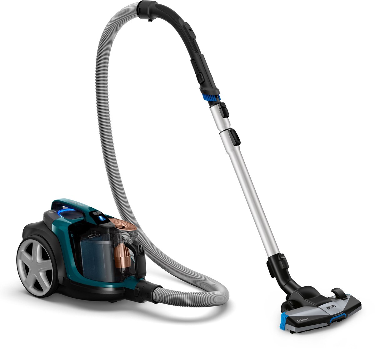 Krachtige PowerCylone 8-technologieDe PowerCyclone 8-technologie zorgt voor de continue hoge zuigkracht. Het aerodynamische ontwerp van de cyclonische kamer vermindert de luchtweerstand en zorgt in 3 zeer efficiënte stappen voor optimale schoonmaakresultaten: 1) Dankzij de rechte, egale luchtinlaat gaat de lucht snel de PowerCyclone in. 2) De gebogen luchtdoorlaat versnelt de opgaande luchtstroom in de cyclonische kamer. 3) Boven in de cyclonische kamer wordt de stof effectief van de lucht gescheiden door de uitlaatbladen.