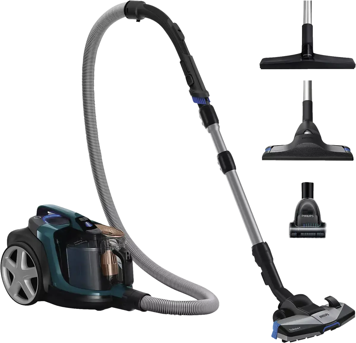 - Extra mondstuk: Turbo-miniborstel, Mondstuk voor tapijtreiniging, Mondstuk voor harde vloeren