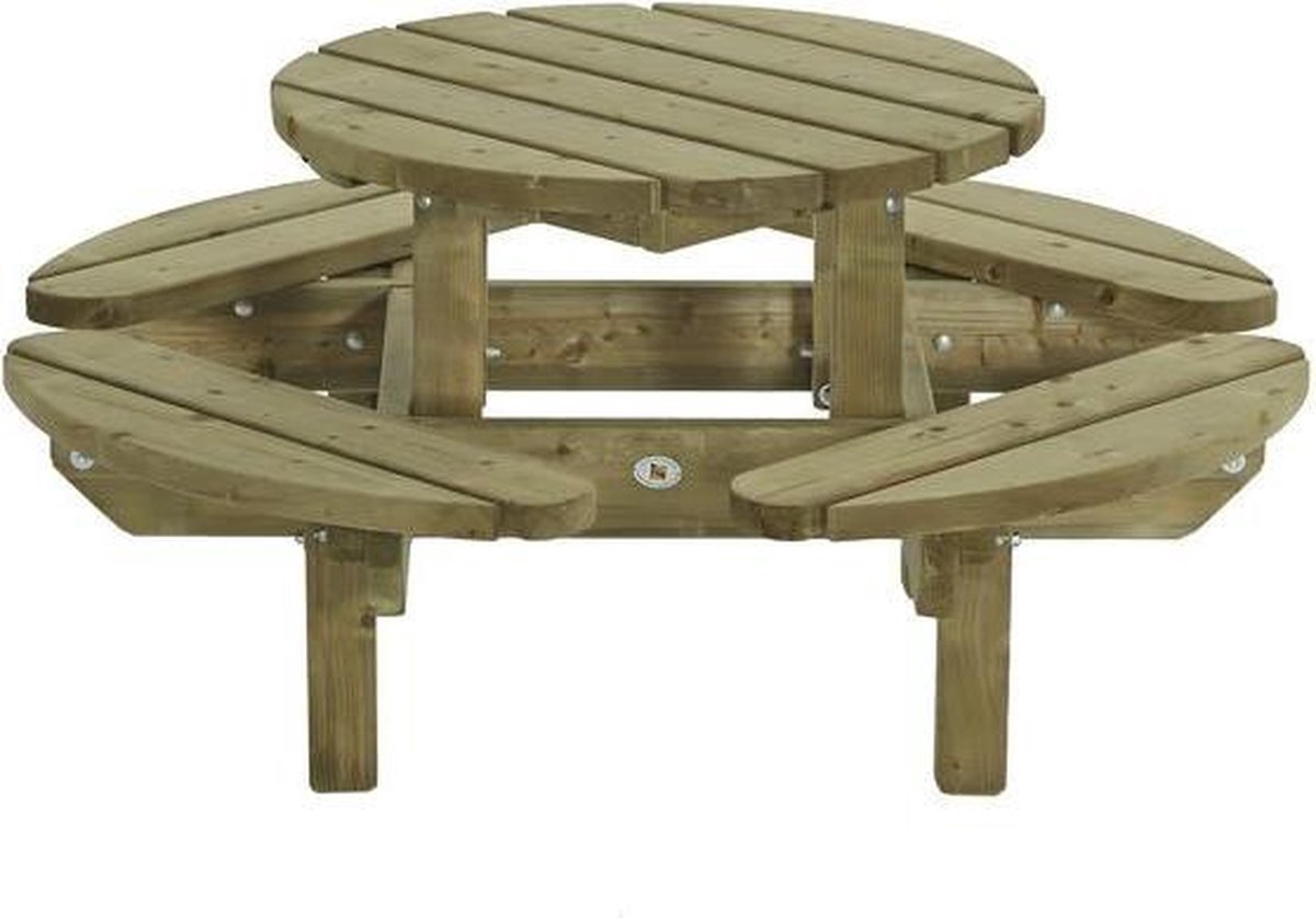 Talen kinderpicknicktafel - Rond - 130x64 cmDe perfecte plek voor kinderen om samen te komen en te genieten van buitenactiviteiten, deze schitterende kinderpicknicktafel biedt ruimte voor acht jonge avonturiers. Met een ronde vorm en een indrukwekkende diameter van 130 cm, is er voldoende ruimte voor iedereen om comfortabel te zitten. Gemaakt van hoogwaardig hout en met een groen geïmpregneerde afwerking, past deze tafel perfect in elke tuin of buitenruimte.Met een zithoogte van 39 cm en een blad- en zittingdikte van 35 mm, biedt deze tafel niet alleen een stevige en duurzame constructie, maar ook een comfortabele zitervaring voor jonge gebruikers. Bovendien is deze picknicktafel voor kinderen voorzien van het FSC®-keurmerk, wat betekent dat het hout afkomstig is uit duurzaam beheerde bossen. Of het nu gaat om buiten spelen, picknicken of knutselen, deze tafel is een ideale aanvulling op elke speelruimte en wordt compleet gemonteerd geleverd voor direct gebruik, of als bouwpakket op aanvraag.