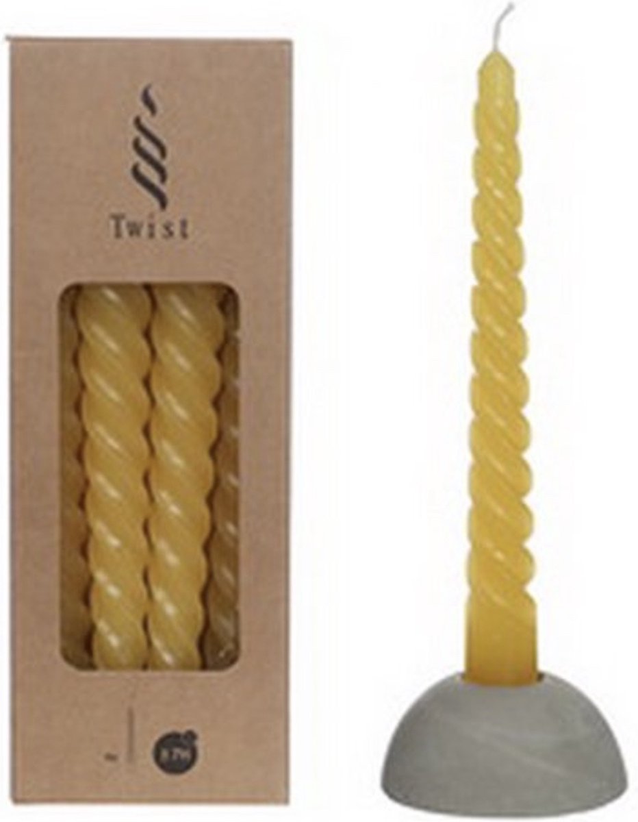 Hortus Twist kaarsen set 4 stuks dia. 2.2 x H 19 cm honing - - Geel