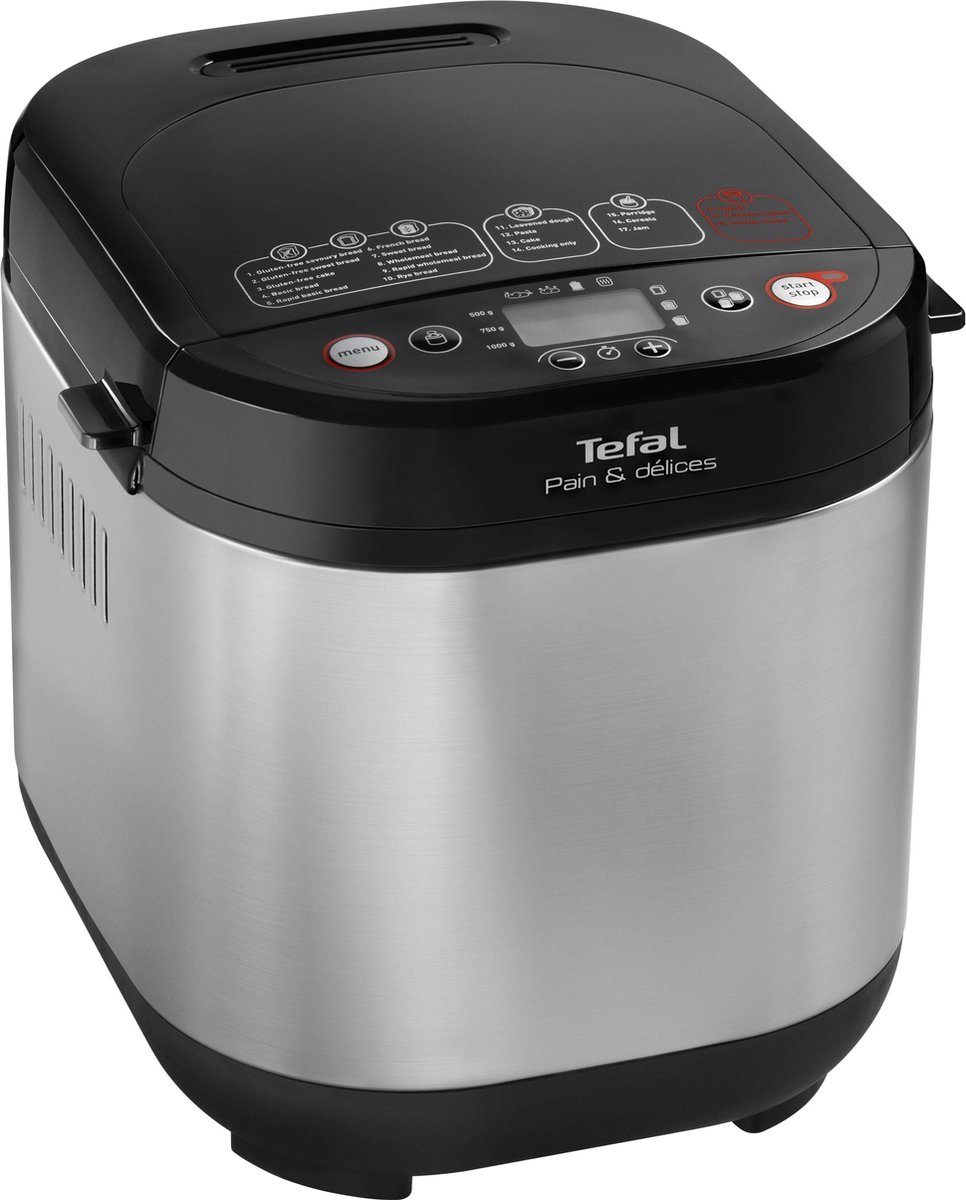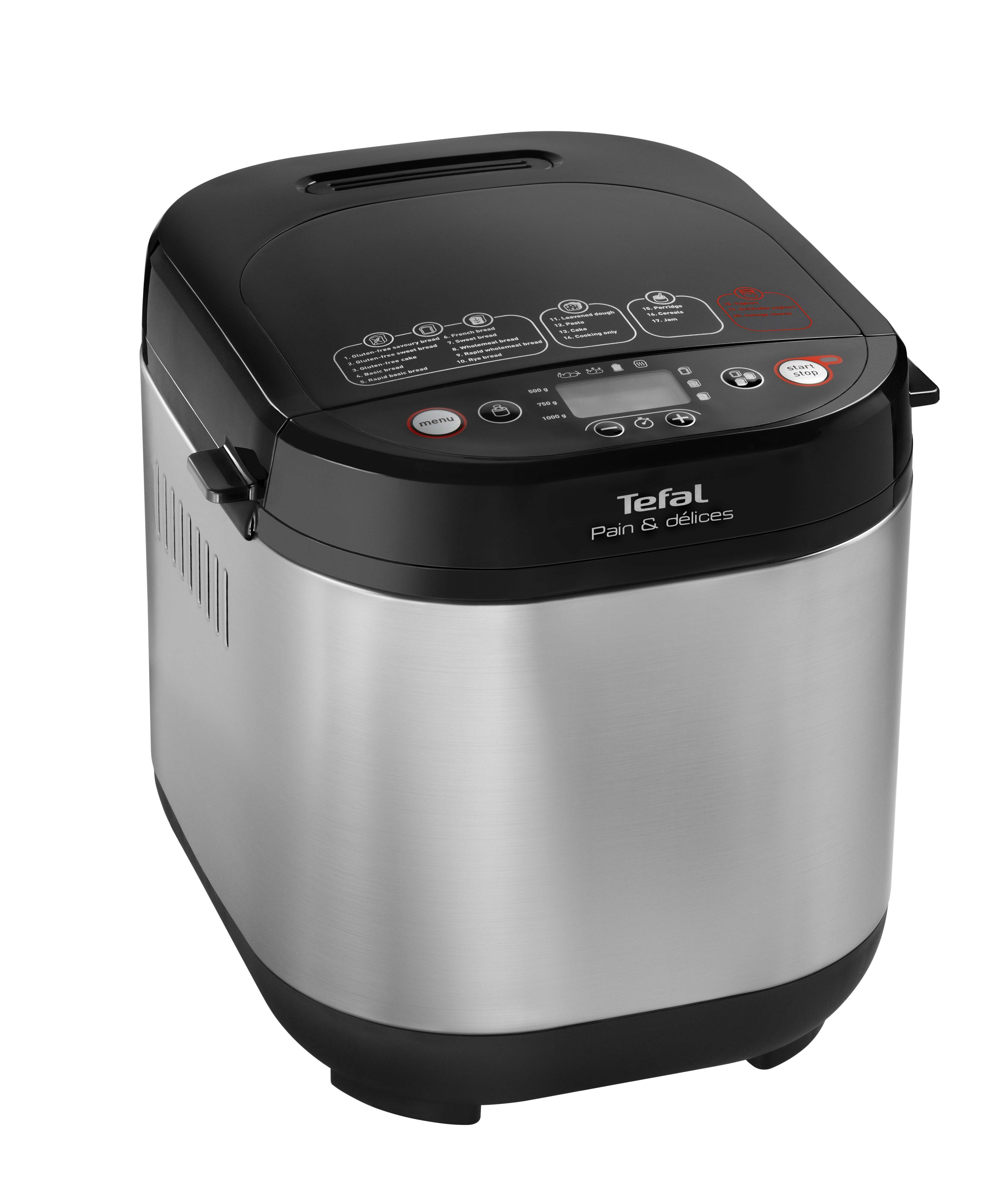 Pain & Délices is de meest complete en veelzijdige broodbakmachine van Tefal. Laat je creativiteit de vrije loop! Geniet niet alleen van heerlijk vers zelfgebakken brood, maar ook van pizzadeeg, verse pasta, jam, havermoutpap en ontbijtgranen, en zuivelbereidingen! Je kunt nu zuivelbereidingen maken voor je gezin: yoghurt, drinkyoghurt en kwark maak je eenvoudig met behulp van 3 speciale programma's + de yoghurtpot met 1 liter inhoud. , Eet je veel brood of weinig? Ben je alleen of heb je een groot gezin? Je kiest gewoon tussen de 3 beschikbare broodformaten, van 500 g tot 1 kg., De lichte en compacte Pain & Délices broodbakmachine heeft een moderne, mooie vormgeving dankzij de metalen afwerking en past daardoor ook in jouw keuken. , Geniet van versgebakken warm brood wanneer je maar wilt dankzij de 15-uurstimer: wat is er nu heerlijker dan 's ochtends wakker worden met de geur van vers brood? . Maar liefst 20 programma's met onder meer glutenvrije programma's: 3 glutenvrije programma's : Glutenvrij hartig brood / Glutenvrij zoet brood / Glutenvrije cake, 7 broodprogramma's : Basisrecept / Snel basisrecept / Frans brood / Zoet brood / Volkorenbrood / Snel volkorenbrood / Roggebrood, 7 diverse programma's : Gistdeeg / Pasta / Cake / Alleen koken / Havermoutpap / Ontbijtgranen / Jam, 3 zuivelprogramma's : Yoghurt / Drinkyoghurt / Kwark.