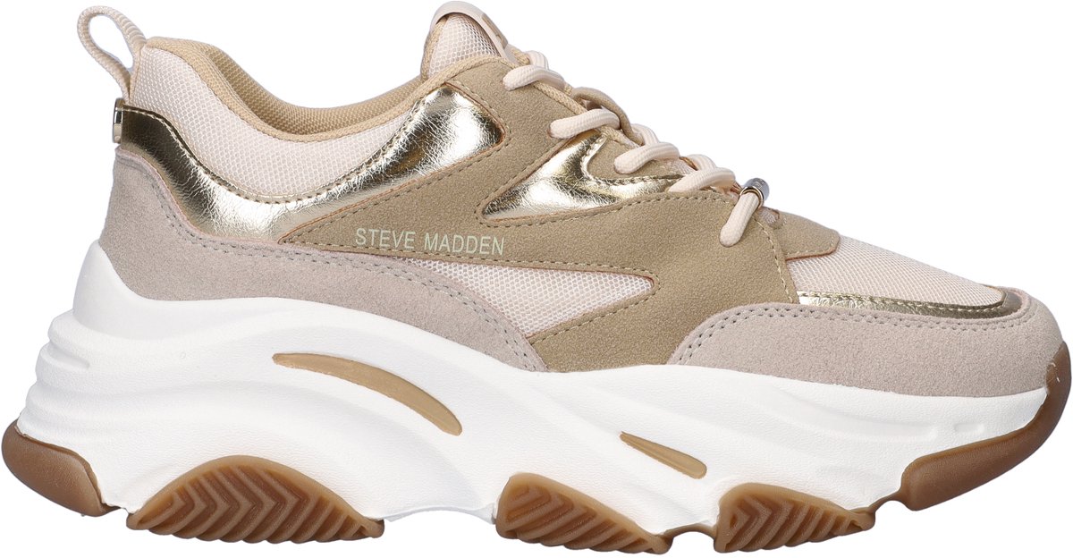 De PROGRESSIVE sneaker is voorzien van een robuuste chunky zool die niet alleen een modieuze look geeft, maar ook zorgt voor extra demping en stabiliteit tijdens het lopen. De verfijnde metallic accenten voegen een luxe touch toe en geven het ontwerp een speels, modern karakter. Op de schoen is subtiele Steve Madden-branding aangebracht, wat de herkenbare en hoogwaardige uitstraling van het merk benadrukt.