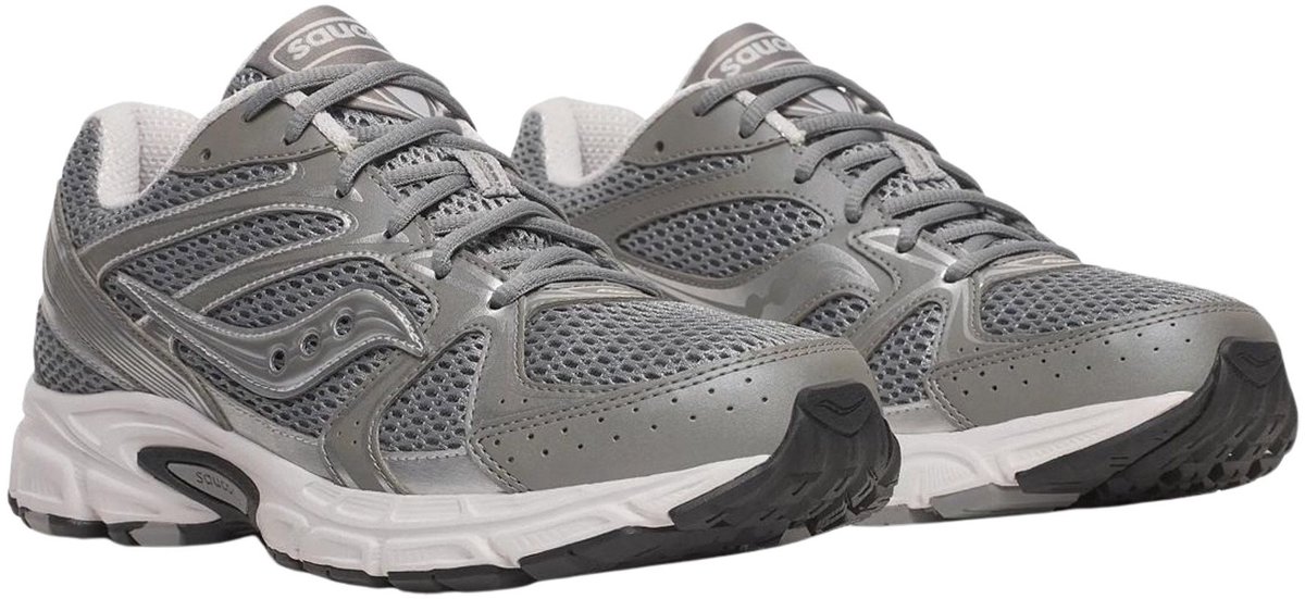 Specificaties: Pasvorm: normale pasvorm; vetersluiting Bovenwerk: imitatieleer en textiel (mesh) Demping: schokabsorberende EVA middenzool Buitenzool: rubberen buitenzool met profiel biedt goede grip Kleur: grijs - zilver - wit Materiaal: synthetisch materiaal - textiel - rubber lees meer over dit product