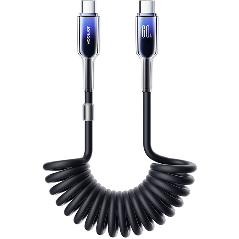 Joyroom S-A43 Crystal-Clear Series 60W USB-C - USB-C spiral cable 1.5m - black - Zwart