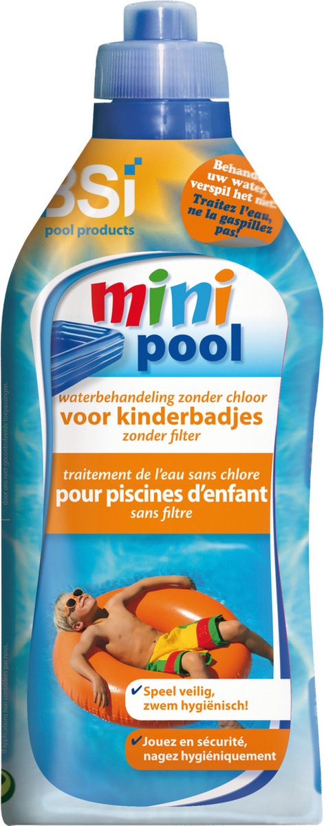 Mini Pool is het ideale onderhoudsproduct, zonder chloor, voor kleine zwem- en plonsbaden zonder filtratiesysteem (± 1000 l). Het water behoudt gedurende 4 à 6 dagen zijn goede kwaliteit. Het water blijft helder, voelt zacht aan en zorgt voor eenveilig zwemplezier. Mini Pool is niet irriterend voor de ogen en is geurloos. Na meerdere dagen of 1 week, is het water toch vaak zo vuil, dat het om hygiënische redenen beter ververst... lees meer over dit product