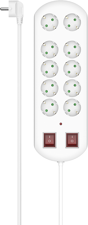 Hama Stekkerdoos, 10-voudig, overspanningsbev., twee schakelaars, 2 m Kabel Wit