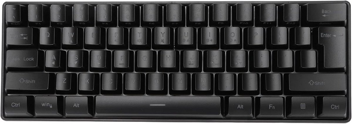 Ervaar ultieme controle met dit compacte 61-toets mechanische gaming toetsenbord. Dit bedrade pc-toetsenbord is perfect voor zowel serieuze gamers als professionals die een compacte setup wensen. Het ergonomische ontwerp zorgt voor een comfortabele typervaring, zelfs tijdens lange gamesessies of werkdagen. **Belangrijkste Kenmerken:** * **Compact 61-Toetsen Ontwerp:** Bespaart ruimte op uw bureau zonder essentiële functies op te offeren. * **Mechanische Schakelaars:** Bieden snelle respons en een bevredigende tactiele feedback. * **Instelbare RGB Verlichting:** Creëer de perfecte gaming-sfeer met diverse instelbare lichtmodi. * **Plug & Play:** Eenvoudige installatie via USB; geen drivers nodig. Direct klaar voor gebruik op uw laptop of pc. * **Stabiel en Antislip:** Voorzien van een stabiel statief voor een stevige en comfortabele typehouding. * **Brede Compatibiliteit:** Ideaal voor thuisgebruik, kantoorwerk of intensief gamen. Dit draagbare toetsenbord is de ideale upgrade voor elke serieuze gebruiker die op zoek is naar prestaties en stijl in een compact formaat.