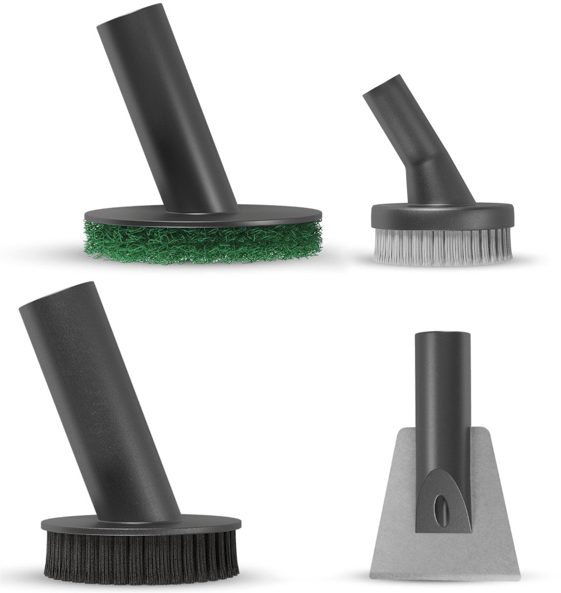 Dankzij de diverse verschillende koppen, kun je precies kiezen welke het best past bij de te reinigen oppervlakte. Ga je voor de korte kleine sproeikop of de lange spuitkop? Kies de ronde borstelkop of de gebogen spuitkop om lastig te bereiken hoekjes schoon te maken.