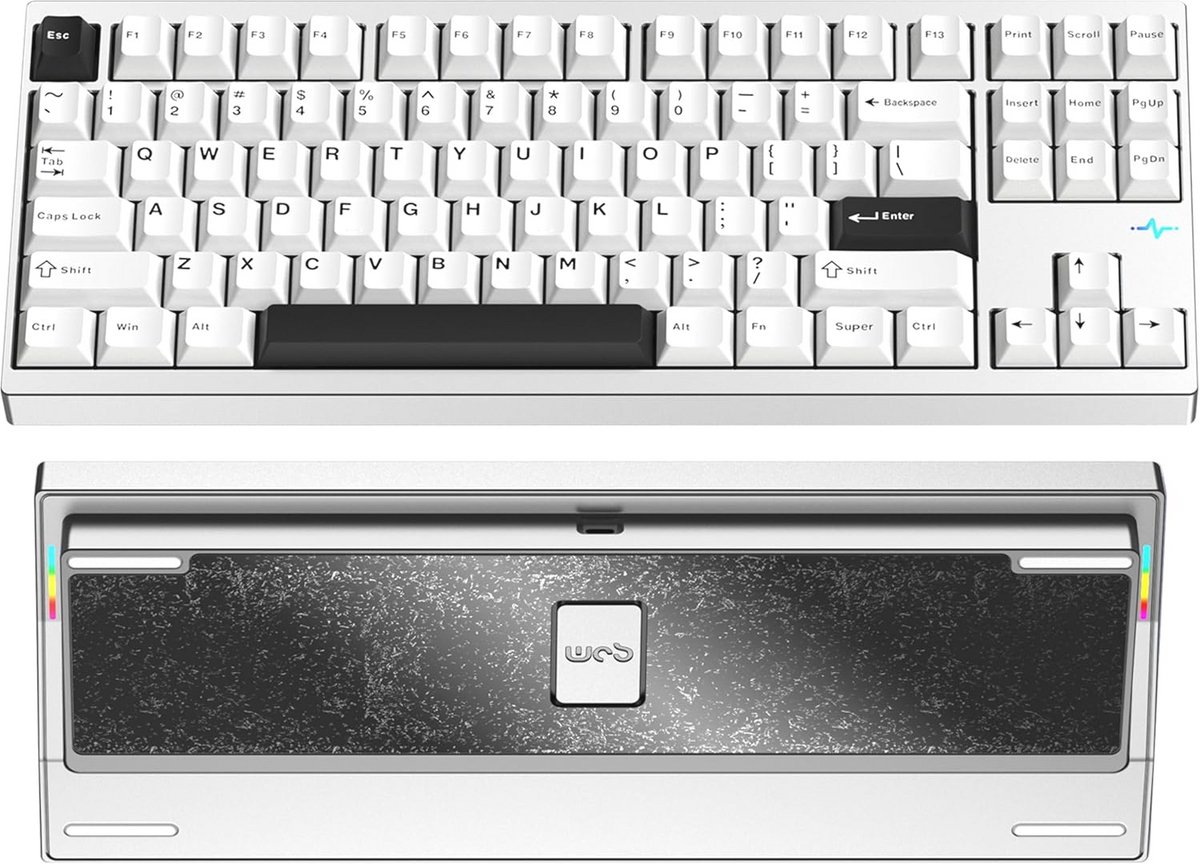 CNC gefreesde aluminium behuizing: deze behuizing is gemaakt van hoogwaardig 6063 aluminium en is CNC-gefreesd voor maximale duurzaamheid. Met een glad, gepolijst oppervlak dat aanvoelt als glas, biedt dit toetsenbord optimaal gebruiksgemak.