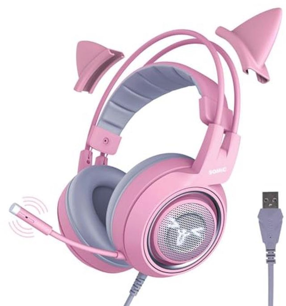 Ervaar een meeslepende gamingervaring met deze roze gaming headset. De headset beschikt over 7.1 virtuele surround sound-technologie voor een nauwkeurige geluidspositionering en een heldere geluidsweergave, waardoor je games tot leven komen. Met een afneembare ruisonderdrukkende microfoon ben je verzekerd van heldere communicatie, perfect voor gaming-sessies. Het comfortabele ontwerp met zachte siliconen kattenoren en een voll... lees meer over dit product