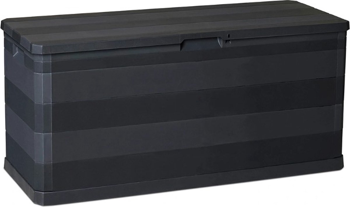 Kussenbox Elegance Zwart Toomax, gemaakt van kunststof. Berg je tuinkussens of andere tuinspullen veilig op in deze stevige opbergbox voor buiten. De afmetingen van deze opbergbox zijn: l 117cm, b 45cm, h 56cm. Deze box is spatwaterdicht, dus niet volledig waterdicht. Bij extreme regen dient u de kussens binnen te leggen.