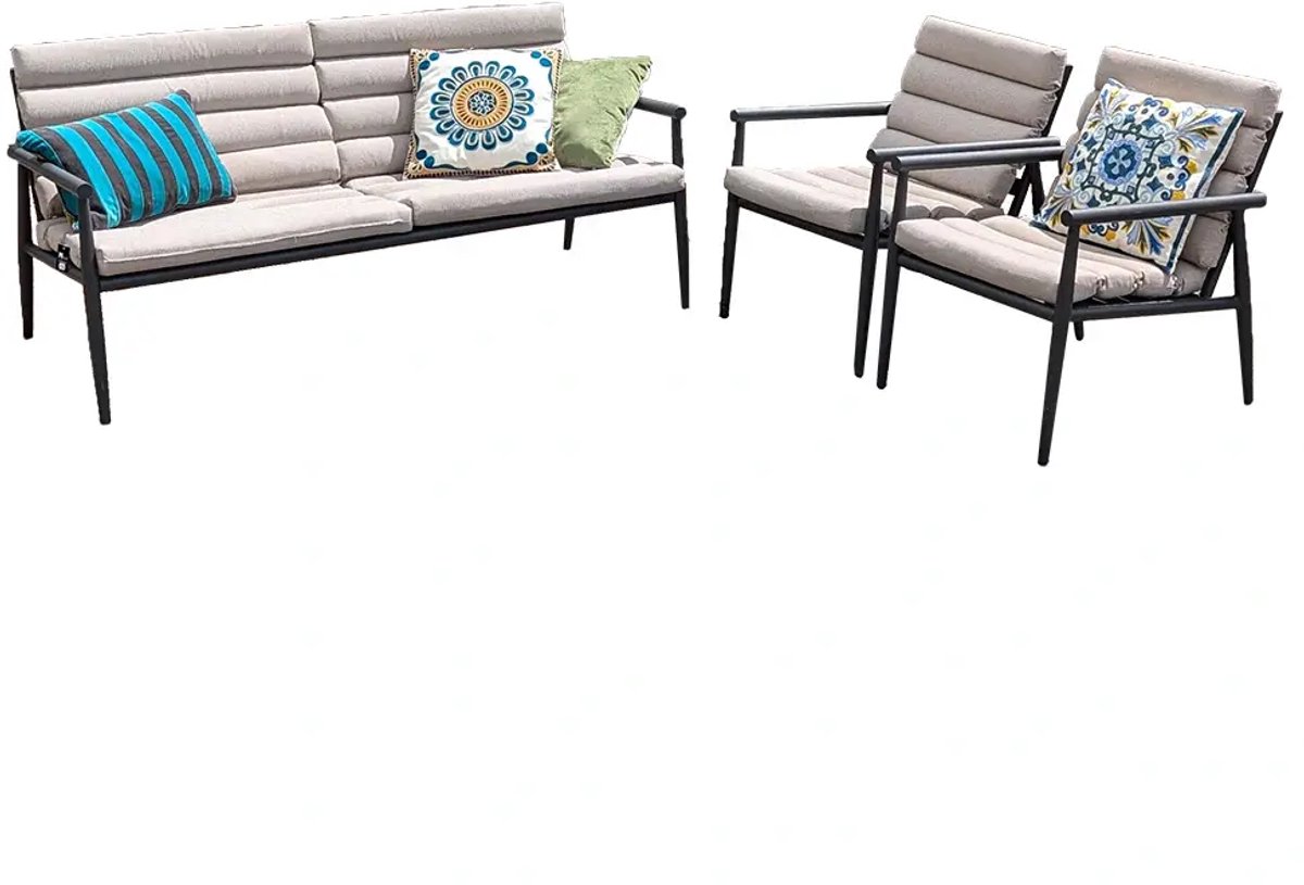 Met de Loungeset Harper van Lesli Living in je tuin geniet je deze zomer optimaal en kom je volledig tot rust! Deze moderne tuinset bestaande uit een ruime 2-zitsbank en 2 heerlijke lounge tuinstoelen, inclusief comfortabele zit- en rugkussens. Combineer de loungeset met een of twee leuke tafels en sfeervolle accessoires (niet bij de set inbegrepen) om jouw zitplek helemaal af te maken.De tuinmeubelen zijn gemaakt van stevig a... lees meer over dit product