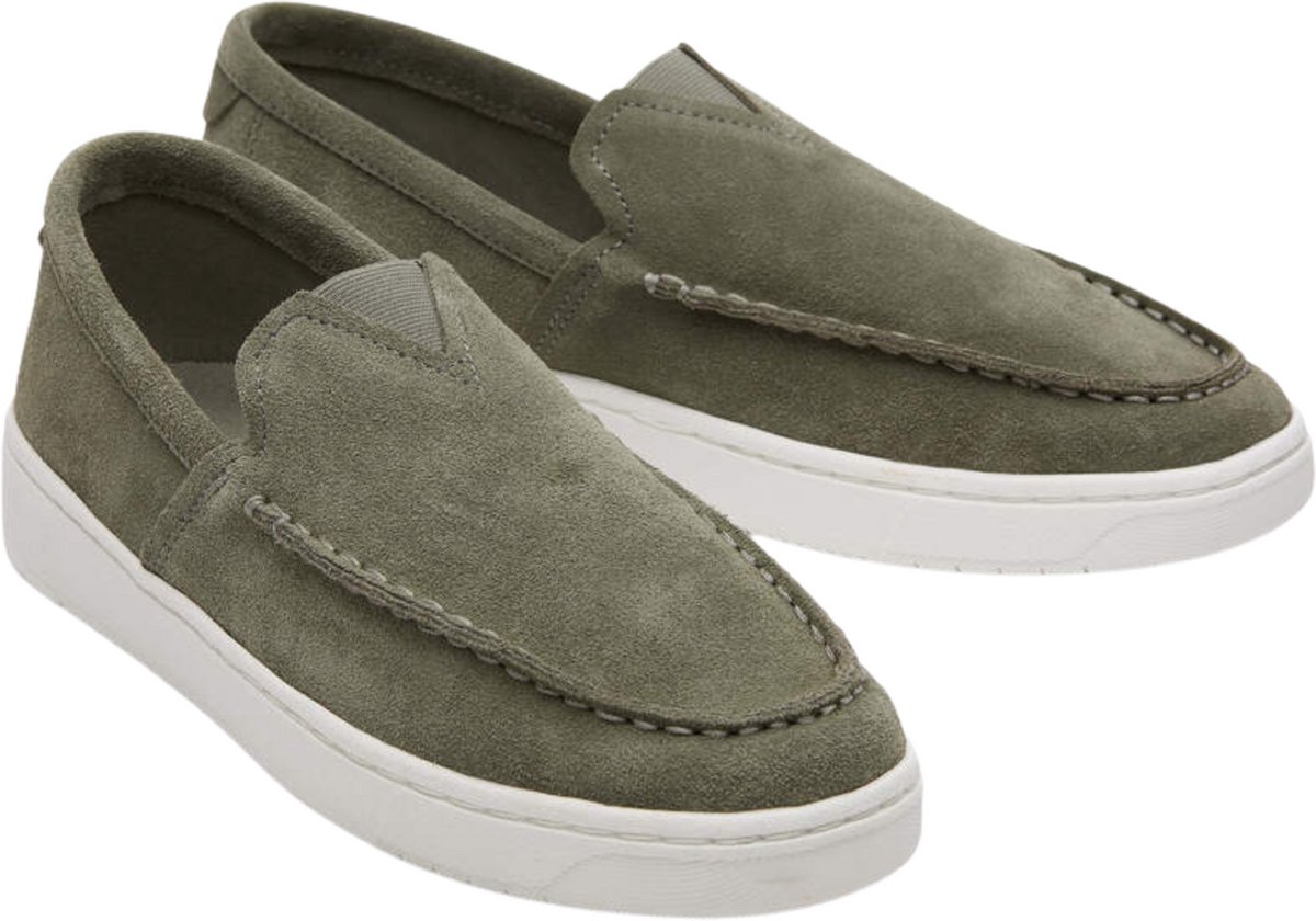 TOMS TRVL Lite loafer in donker grijs/groen voor heren. Deze instapper heeft een bovenwerk gemaakt van suède. Elastische 'V' op de bovenkant voor een gemakkelijke pasvorm.