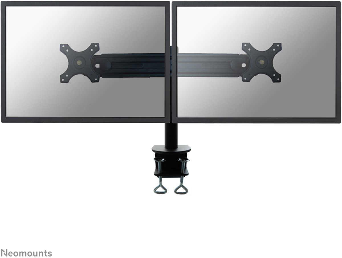 Met deze Neomounts monitorarm, model FPMA-D700D, bevestigt u twee flatscreens aan het bureau via een bureauklem. Door gebruik te maken van een monitorarm profiteert u optimaal van de mogelijkheden van uw monitor. De monitorarm is eenvoudig in hoogte en diepte te verstellen. Tevens kunt u het scherm kantelen, zwenken en roteren. Hierdoor creëert u de ideale ergonomische werkhouding. Dit verkleint de kans op nek- en rugklachten. Kabels zijn netjes weg te werken aan de onderzijde van de horizontale arm. De FPMA-D700D heeft 1 draaipunt en is geschikt voor schermen t/m 30" (76 cm). Het draagvermogen van de arm is 8 kg per scherm. Dit product is geschikt voor schermen met een VESA gatenpatroon van 75x75 mm of 100x100 mm. Heeft u een afwijkend (groter) gatenpatroon, dan kunt u dit oplossen met een van onze VESA verloopplaten.