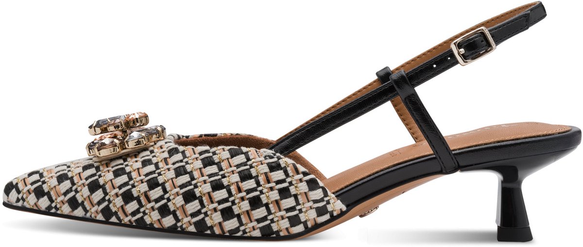 Voel je vrij en zelfverzekerd met deze Tamaris sling. De spitse neus geeft je een elegante uitstraling, terwijl de Queenie hak van 4 cm je net dat beetje extra comfort biedt. Dankzij de TOUCH-IT technologie past de zachte binnenzool zich aan jouw voet aan, zodat je de hele dag relaxed loopt. Met de ANTIslide zool sta je stevig in je schoenen, waar je ook bent. Maak elke dag uniek, gewoon op jouw manier.