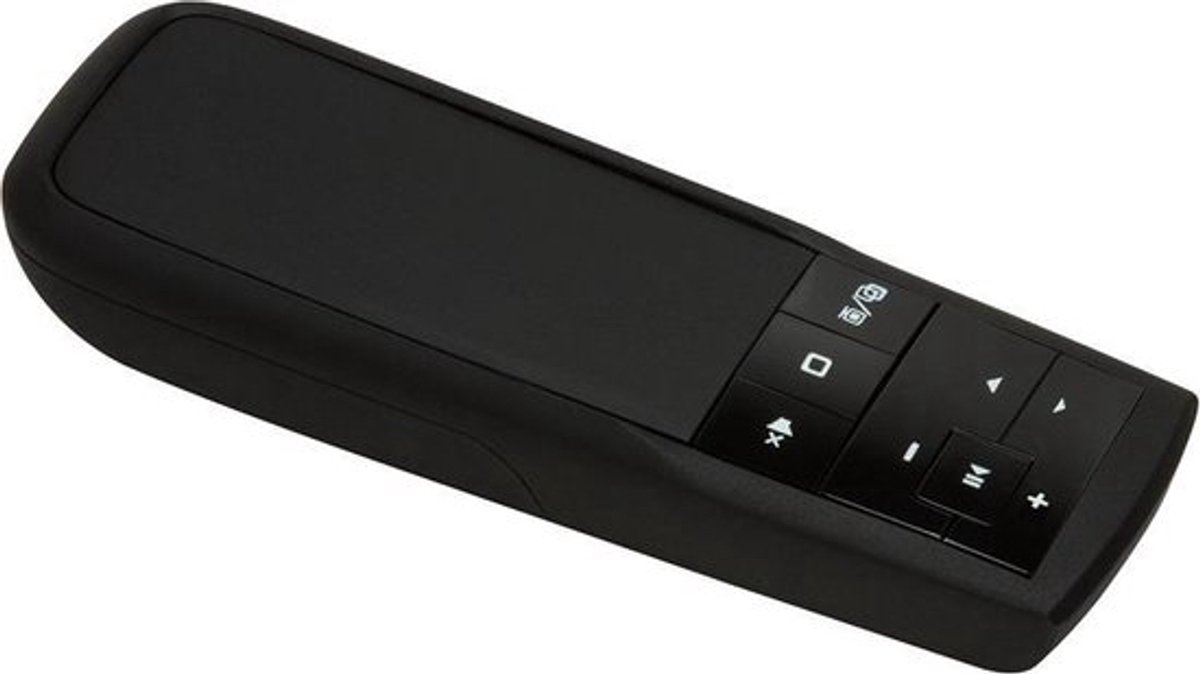 Het design van de Draadloze EasyShow Presenter is strak en modern, met een elegante zwarte kleur. Met een breedte van 38 mm, een diepte van 110 mm en een hoogte van 17 mm ligt deze presenter comfortabel in de hand en is hij gemakkelijk mee te nemen in uw tas of zak.