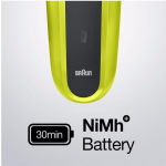 Het Braun Elektrisch Scheerapparaat Series 3 300BT Zwart is ontworpen en gemaakt in Duitsland met oog voor duurzaamheid en kwaliteit. Het apparaat is voorzien van twee oplaadbare Ni-MH-batterijen, die volledig opgeladen worden in slechts 1 uur. Hiermee heeft u tot wel 30 minuten trim- en scheertijd tot uw beschikking.