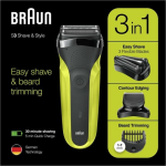 Verzorg je gehele baard met de Braun Series 3 300BT Zwart/Groen