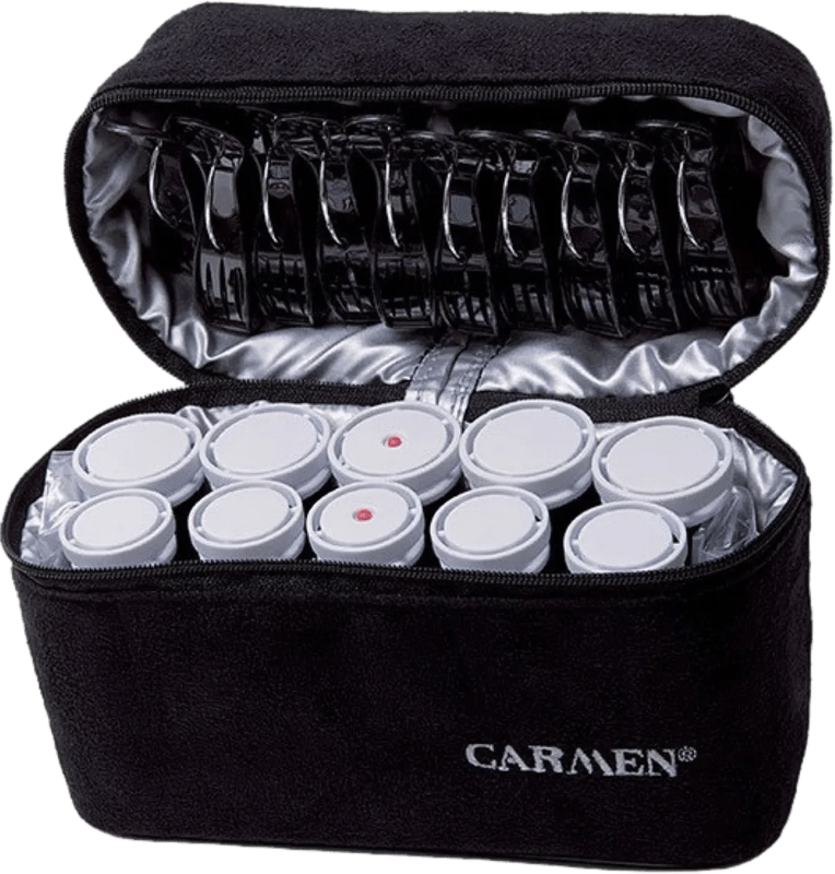Als je goed verzorgd en met prachtig gestyled haar voor de dag wilt komen, is de Carmen Travel reiskrulset jouw beste keuze. Carmen is al 45 jaar een toonaangevend merk op het gebied van haarverzorging en marktleider in de personal care markt. Met deze reiskrulset kun je eenvoudig en handig prachtige krullen creëren, zodat jouw haar altijd perfect zit, zelfs tijdens je reis. De set bevat 10 rollers, waaronder 5 grote rollers (28 mm) en 5 medium rollers (23 mm),waarmee je diverse soorten krullen kunt maken. Dankzij het dual voltage ontwerp is deze krulset geschikt voor wereldwijd gebruik, ongeacht de verschillende stroomsterktes (120/240 volt). Het handige en moderne reisetui, de meegeleverde vlinderklemmen en clips en de duidelijke kleurenindicatie "klaar voor gebruik" maken deze krulset onmisbaar voor iedereen die van mooi krullend haar én reizen houdt!
