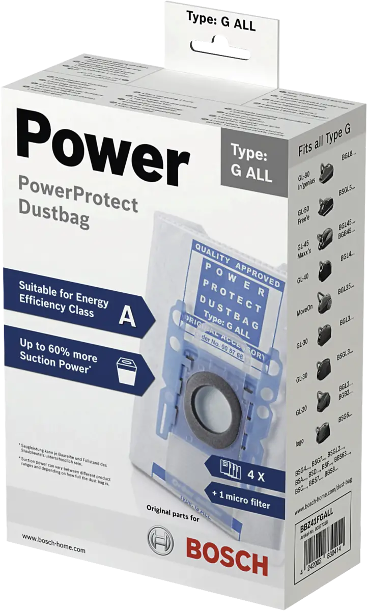 De PowerProtect stofzuigerzakken zijn geschikt voor alle stofzuigers van Bosch. Of u nu een oudere stofzuiger heeft of een gloednieuwe, deze stofzuigerzakken passen perfect.