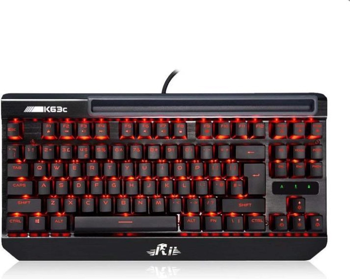Rii K63C. Stijl toetsenbord: Recht. Connectiviteitstechnologie: Bedraad, Aansluiting: USB, Toetsenbord toetsschakelaar: Mechanische keyswitch, Toetsenbordindeling: QWERTY, Aantal toetsen, toetsenbord: 87. Backlight type: LED. Aanbevolen gebruik: Gamen. Kleur van het product: Zwart