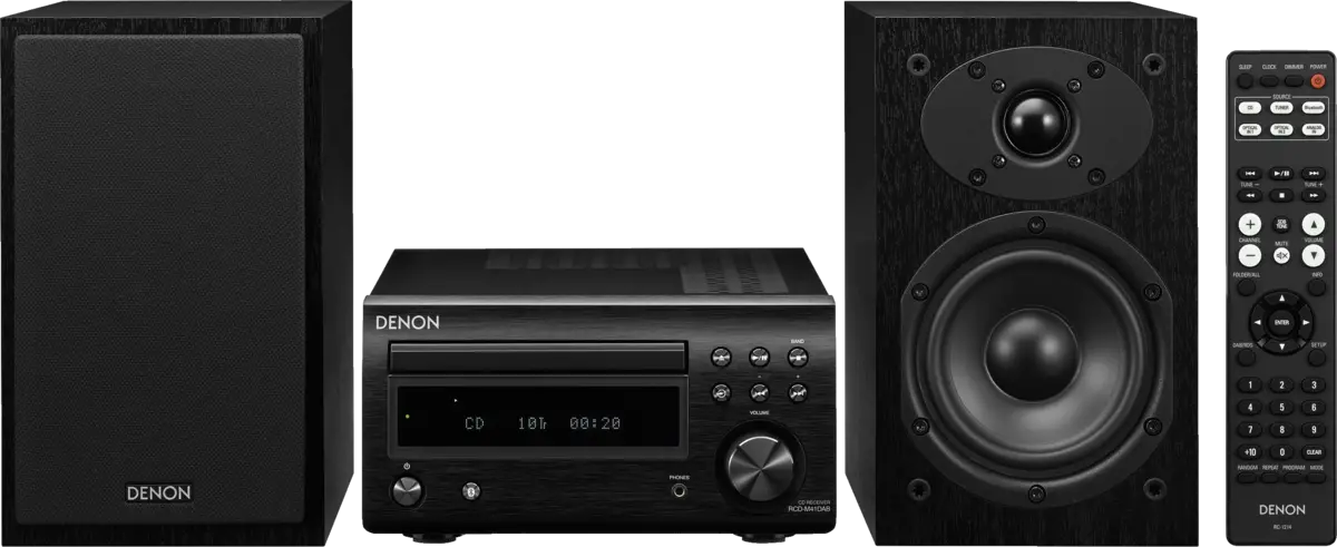 Dankzij het compacte design van de D-M41DAB past dit systeem moeiteloos op een boekenplank, in de slaapkamer of in een kantoor aan huis. Met 2 x 30 W vermogen levert de RCD-M41DAB genoeg kracht om de bijpassende SC-M41-speakers aan te drijven, wat resulteert in een indrukwekkende geluidsweergave.