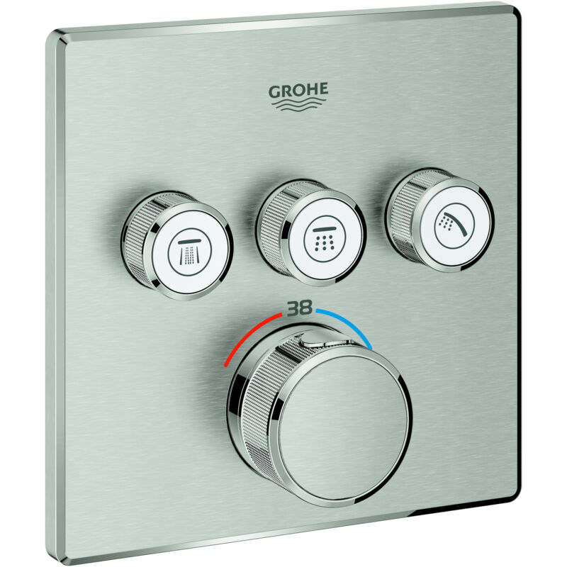 Grohe Grohtherm SmartControl afbouwdeel v. inbouwkraan thermostatisch met omstel v. 3 functies vierkant supersteel 29126DC0