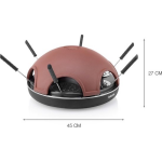 Met de handgemaakte Terracotta dome van de Pizza Festa 6 bereik je de perfecte temperatuur voor krokante mini pizza's. Deze speciale koepel zorgt ervoor dat de pizza-oven extra heet wordt, waardoor de pizza's optimaal bakken. Met zes openingen in de koepel kan iedereen tegelijkertijd zijn eigen pizza maken. Bovendien heeft de pizza maker een handig netsnoer van 2 meter, zodat de oven eenvoudig kan worden aangesloten.