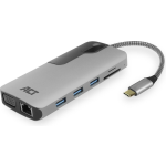 ACT AC7043 - USB-C naar HDMI of VGA Multiport adapter met EthernetMet de ACT AC7043 USB-C naar HDMI of VGA Multiport adapter met Ethernet breid je eenvoudig het aantal aansluitingen op je laptop, computer, notebook of Macbook uit. Met de VGA en HDMI aansluitingen kun je zelfs een extra monitor aansluiten en genieten van een maximale resolutie van 4K (4096 x 2160 pixels) @ 30Hz met HDMI of Full HD (1920 x 1080 pixels) @ 60Hz ... lees meer over dit product