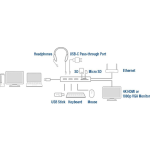 De adapter is voorzien van een USB-C Power Delivery poort waarmee je maximaal 60 watt kunt opladen, ideaal voor het opladen van je laptop of smartphone. Dankzij de ingebouwde cardreader kun je gemakkelijk bestanden overzetten vanaf SD en Micro SD geheugenkaarten.
