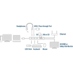 Met de ACT AC7043 USB-C naar HDMI of VGA Multiport adapter met Ethernet breid je eenvoudig het aantal aansluitingen op je laptop, computer, notebook of Macbook uit. Met de VGA en HDMI aansluitingen kun je zelfs een extra monitor aansluiten en genieten van een maximale resolutie van 4K (4096 x 2160 pixels) @ 30Hz met HDMI of Full HD (1920 x 1080 pixels) @ 60Hz met VGA.