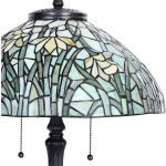 Niet alleen bij elektrische verlichting, maar ook bij daglicht komen de prachtige effecten van Tiffany glas tot hun recht. De groene glas in lood lampenkap met floraal motief zorgt voor een warm en sfeervol licht in elke ruimte. Of het nu de woonkamer, werkkamer of keuken is, deze tijdloze tafellamp past altijd perfect bij jouw interieur.