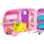 Of het nu in de eigen achtertuin is of op een spannende reis, Chelsea™ en haar puppy staan altijd klaar om te kamperen. Bevestig de camper aan de cabriolet en ga op pad. Bij aankomst kan de camper worden losgemaakt en geopend worden om een gezellige keuken met wasbak, fornuis en koelkast te onthullen. Er zijn zelfs twee stapelbedden met een ladder, zodat er altijd ruimte is voor een vriendje of vriendinnetje. Het hondenluikje zorgt ervoor dat de puppy vrij in en uit kan lopen.