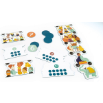 Dit leuke en boeiende spel is perfect om kinderen kennis te laten maken met hun eerste setjes en wiskundige begrippen. De spelset bevat geïllustreerde kaarten met verschillende dieren die je kunt ontdekken en tellen.