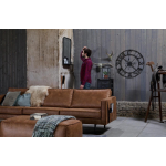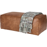 De poef is gemaakt van stoer Recycle leer in de kleur cognac. Wat is Recycle leer? Dit is een innovatieve stof die ontstaat uit het vermalen van restanten leer die overblijven bij het snijden van patronen. Dit leer wordt vervolgens gemengd met polyester, waardoor Recycle leer bestaat uit 70% echt leer en 30% polyester. De stof heeft een unieke uitstraling dankzij de onderlaag van gerecycled echt leer. Daarnaast zorgt de polyester afdeklaag ervoor dat de stof stevig en duurzaam is.