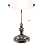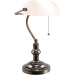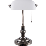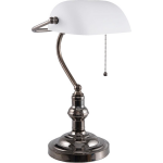 Exclusieve bankierslamp bureaulamp met tijdloos designCreëer directe, sfeervolle verlichting in je werkkamer met deze exclusieve bankierslamp bureaulamp. Met een witte glazen kap en zilverkleurige voet voorzien van een klassieke trekschakelaar, is deze lamp een tijdloze toevoeging aan jouw interieur. De lamp is gemaakt van hoogwaardig ijzer en glas en heeft een afmeting van 27x23x42 cm. Met een E27/max 1x60W fitting biedt dez... lees meer over dit product