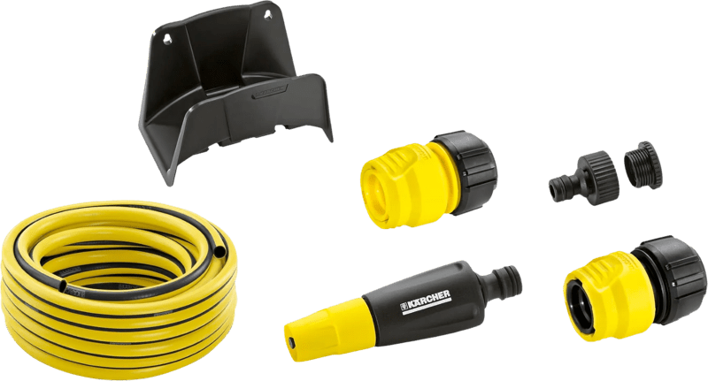 Op zoek naar een complete oplossing voor bewatering met een hogedrukreiniger? De Slangset met wandhouder is de ideale keuze. Deze set omvat alles wat je nodig hebt voor een efficiënte bewatering van je tuin.