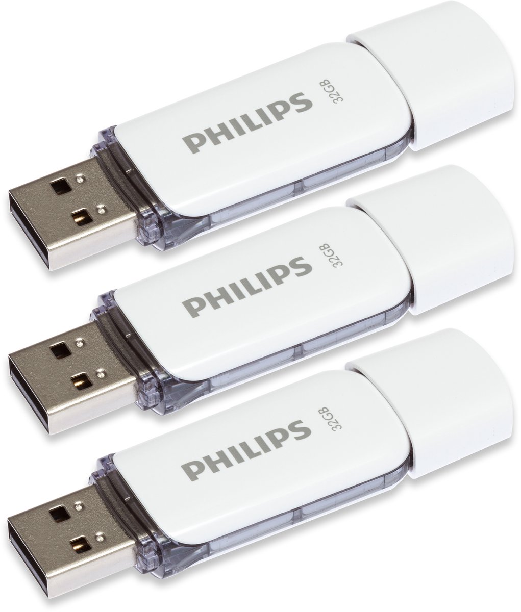 Philips Snow USB Flash Drives zijn een betrouwbaar en stijlvol medium voor het opslaan en uitwisselen van al uw favoriete bestanden. Door het compacte formaat kunt u ze eenvoudig overal mee naartoe nemen.32GB Opslagcapaciteit32GB biedt voldoende capaciteit om minimaal 9.000 van uw favoriete foto’s of 5.500 MP3 muziekbestanden op te slaan *).Eenvoudig in gebruikDe flash drive is voorzien van een dop die de USB-connector beschermt en tijdens gebruik eenvoudig op de achterkant van de flash drive geplaatst kan worden. Dit voorkomt dat de dop zoekraakt.IndicatielampjeEen handig lampje geeft aan of de flash drive op de juiste manier verbonden is en werkt en knippert als er bestanden van en naar de drive gekopieerd worden.Specificaties:Opslagcapaciteit: 32GBUSB klasse: High Speed USB 2.0Max. snelheid: Lezen: 23MB/s Schrijven: 15MB/sSysteemeisen: Windows XP en hoger MAC OS 9.0 en hoger Linux 2.4.0. en hogerGarantie: 2 jaarAfmetingen (BxHxD): 2 x 5.9 x 0.9 cmGewicht: 0.008 kg*) Gebaseerd op 10MP jpg gecomprimeerde foto’s en MP3 bestanden met een gemiddelde duur van 3 minuten (256kb/s, gemiddelde bestandsgrootte: 5.7 MB).