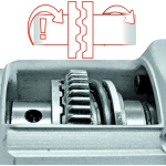 De boorhamer wordt geleverd met een duurzame aluminium aandrijving en een verstelbare metalen boordiepteaanslag, waarmee u exacte boordieptes kunt herhalen. Daarnaast is er ook een geribbelde extra handgreep met softgrip voorzien, wat zorgt voor nog meer grip en controle tijdens het werken.