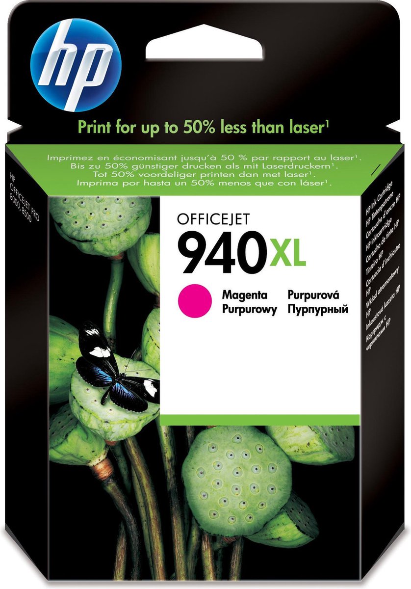 HP 940XL Officejet inktcartridges produceren professionele kleurenprints voor een gunstige prijs. Indrukwekkende, duurzame documenten printen op gewoon papier met inkt op pigmentbasis voor kantoorgebruik. Produceer superieure kleurendocumenten voor een lagere prijs dan met laser. HP Officejet inkt produceert kleurenprints tot 50% voordeliger. Produceer zakelijke kleurendocumenten met inkt op pigmentbasis en papier met het ColorLok-logo.