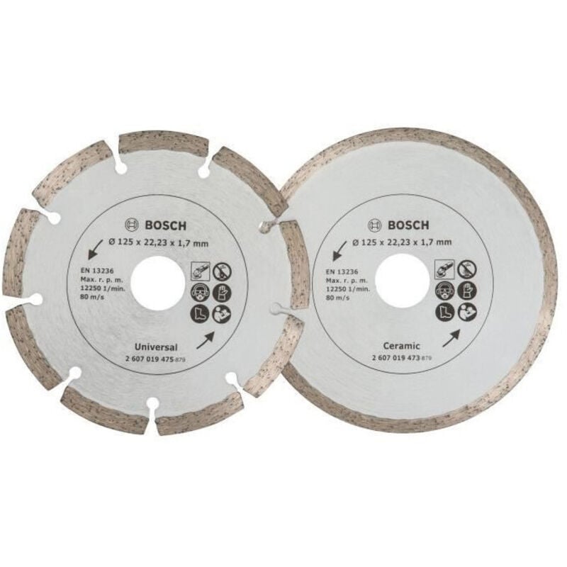 Voor doe-het-zelvers die regelmatig klussen met bouwmaterialen en keramische tegels is het dubbelpack slijpschijven 125 mm een absolute must-have. Dit pakket bevat één universele diamantschijf met gesegmenteerde snijrand, ideaal voor de meest voorkomende doe-het-zelf klussen. Daarnaast bevat het ook een diamantschijf met een ongesegmenteerde snijrand, speciaal ontworpen voor keramische tegels.