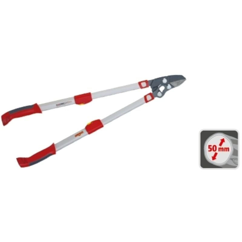 De solide en robuuste verstelbare aambeeld takkenschaar Premium Plus biedt ongeëvenaarde snijkwaliteit. Met de nieuwe snijkoptechnologie geniet je van maar liefst 4 keer meer kracht, waardoor het snoeien van takken tot circa 50 mm Ø een fluitje van een cent wordt. Bovendien zorgen de ergonomisch gevormde handvatten met anti-slip softgrip en de stabiele hefboomarmen van hoogwaardig geëloxeerd aluminium voor comfort en controle tijdens het gebruik.