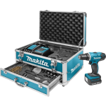 Met de meegeleverde 59-delige gereedschapset ben je direct voorzien van een complete boor- en schroefuitrusting voor middelzware werkzaamheden. De set wordt geleverd in een luxe aluminium koffer, waardoor je jouw gereedschap altijd geordend en overzichtelijk kunt bewaren. Geen gedoe meer met het zoeken naar de juiste tools, met deze set heb je alles binnen handbereik.
