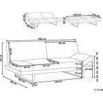 De slaapbank heeft een afmeting van 190x105 cm als ligoppervlak en biedt plaats aan twee personen. De armleuningen hebben een hoogte van 29 cm en de zitting heeft een dikte van 16 cm. Met een gewicht van 44 kg is deze slaapbank eenvoudig te verplaatsen. Bovendien worden de poten apart meegeleverd en kunnen ze binnen 5-15 minuten worden gemonteerd.