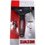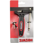 Simson De Luxe kettingponsDe Simson De Luxe kettingpons is de ideale tool voor het inkorten of repareren van vrijwel iedere fietsketting! Met zijn krachtige en robuuste ontwerp is deze kettingpons in staat om met minder kracht het pinnetje van een kettingschakel naar buiten te drukken. Dankzij de grote arm van de kettingpons wordt het vervangen van een schakel een eenvoudige klus.Deze kettingpons is vervaardigd uit duurzaam ... lees meer over dit product