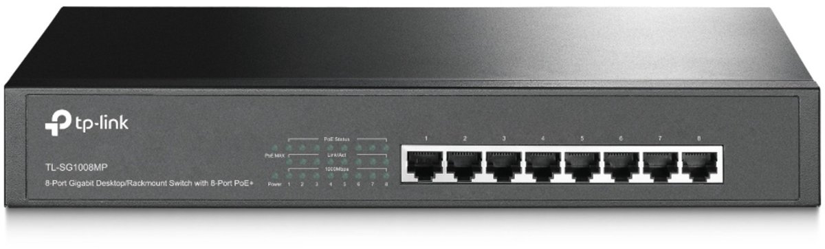 De TL-SG1008MP is een 8-poorts Gigabit Desktop/Rackmount-PoE-switch die de PoE+-standaard ondersteunt op alle poorten. Hiermee kunt u het netwerk eenvoudig uitbreiden, zowel qua stroom als gegevens. Deze switch is perfect voor bedrijven die behoefte hebben aan een betrouwbare en efficiënte oplossing voor hun netwerkinfrastructuur.Korte specificaties