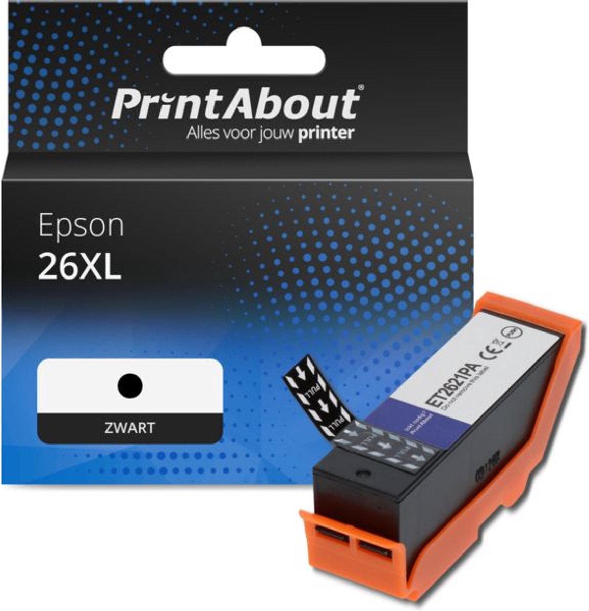 PrintAbout Huismerk Epson 26XL (T2621) Inktcartridge Hoge capaciteit - Zwart