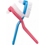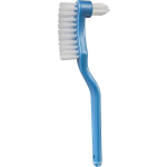 Dankzij de gebogen borstelkop kunt u gemakkelijk alle oppervlakken van uw prothese bereiken en efficiënt reinigen. Daarnaast beschikt deze borstel over een extra kop met harde en spitse borstelharen. Deze kop is speciaal ontwikkeld om grondig tussen de tanden van uw prothese te reinigen, zodat zelfs de moeilijkst bereikbare plekken geen plaque achterlaten.