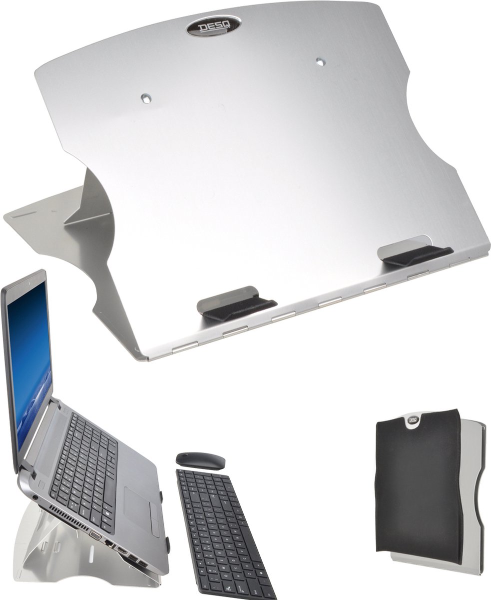 Desq ® Laptop standaard | 5 hoek standen | t/m 17" | Aluminium | Slechts 6mm dik | Incl. hoes/ muismat - Silver